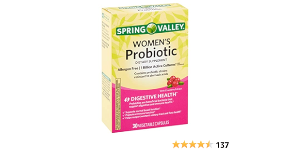 And directions before using or consuming a product. Item 7 Spring Valley WOMENS Probiotic 4x30120 Vegetable Capsules Exp 2021 7 -Spring Valley WOMENS Probiotic 4x30120 Vegetable Capsules Exp 2021. With 8 excessive efficiency probiotic strains and 125 milligrams of cranberry extract per capsule you may be on the trail to raised well being with only one Spring Valley Womens Probiotic Dietary Complement per day.